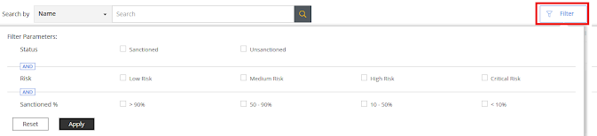 To filter Apps for specific criteria, select the Filter button on the right side of the page.