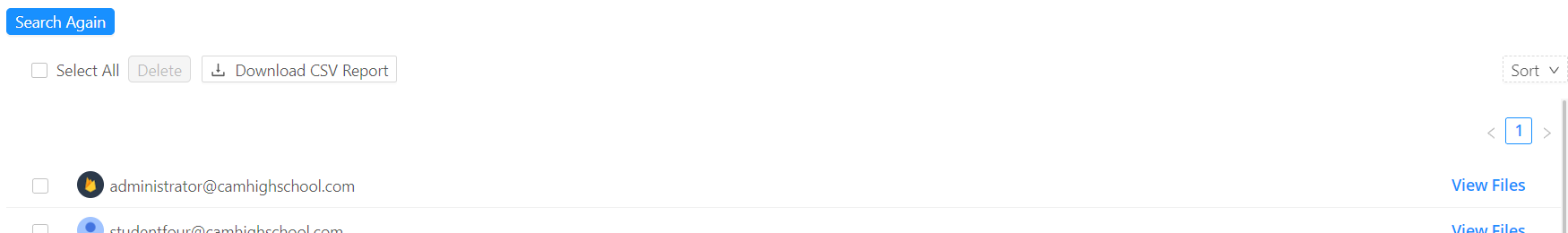 Search results will appear in a summary list. Select "View Files" to open further details on the desired user(s).