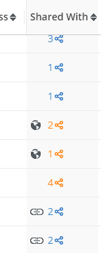 The shared with column will display share information about the file, you will see a number indicating the number of shares, and then an icon that lets you know how the file was shared.