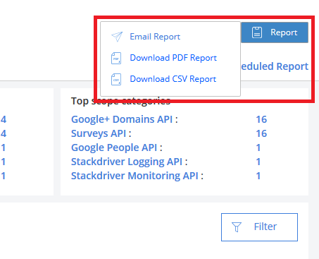 Once the filters you prefer have been selected, click the "Report" button in the top right side of the screen. You will be given three options.