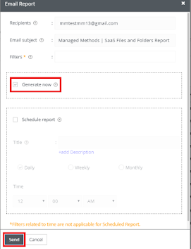 Generate Now: Select the checkbox, and click "Send" at the bottom of the window.