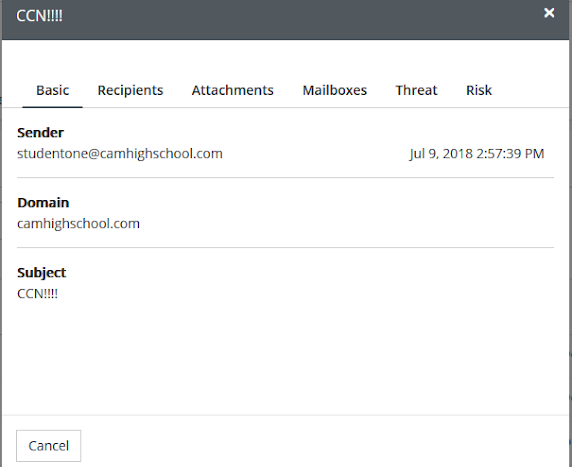 By clicking the subject of the email, a popup will appear displaying information about the email.