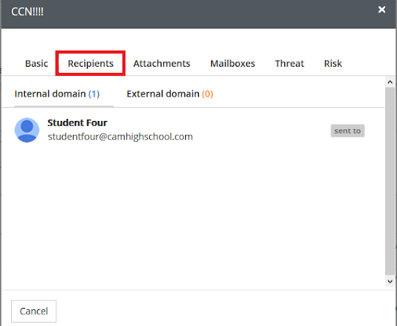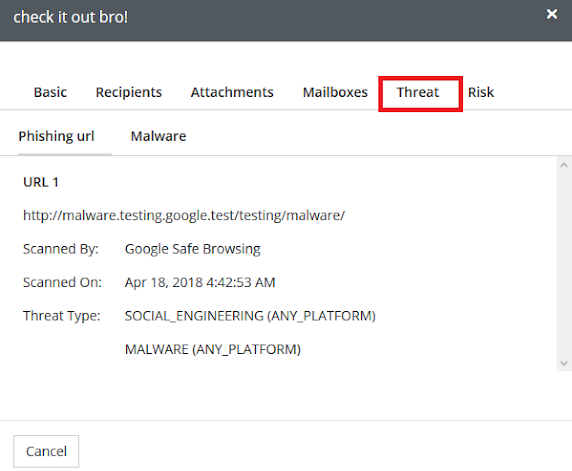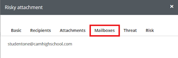 The Risk tab will display information about the type of risk that was caught. This does not include malware or phishing urls.