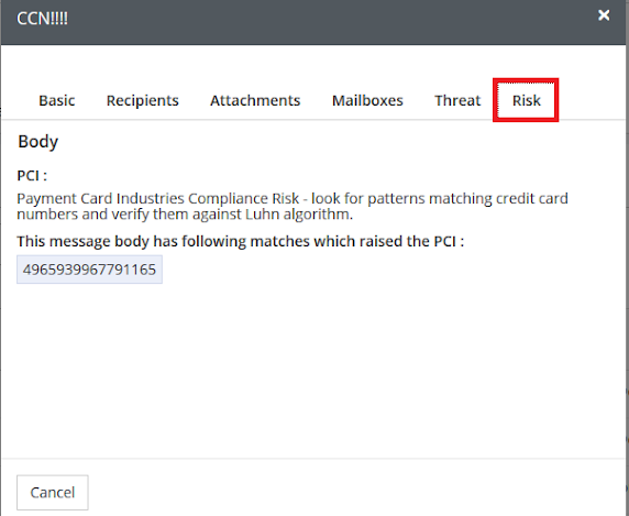 Risky Messages: Messages that contain risk, such as a PCI violation.