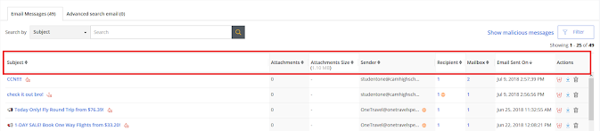 The Email Messages Tab will display all emails found in your environment within the last 7 days.