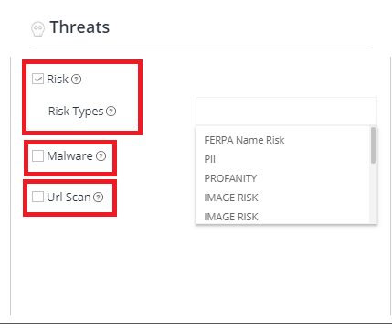 Here you can select which threat types to monitor for, Risk, Malware, Url Scan.