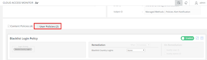 Notify Admin: The cloud administrator will be emailed of the policy violation.