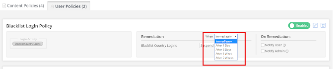 Now choose when you want the remediation to occur, above the Unapproved IP addresses Logins dropdown you will see the When Dropdown.