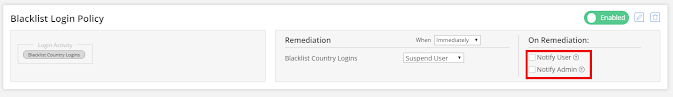 Suspend User: When a user account is logged in from a unapproved country the account will be suspended.