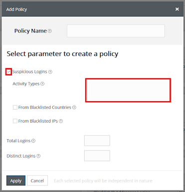 Black listed logins can be filtered by login event type even further. Create a new Policy by selecting the Add Policy Button at the bottom of the page.