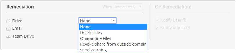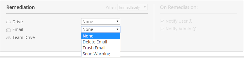 At this point you may choose if you would like any Automatic Remediation to take place. Each source has its own remediation options.