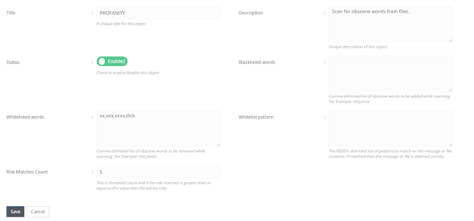Here you will be able to set a number of parameters that pertain to the profanity risk.