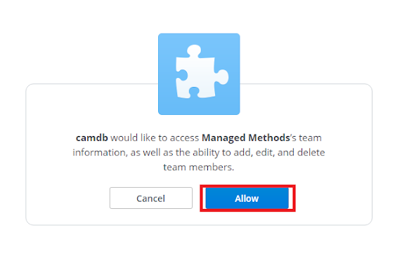 A popup will appear with CAM requesting permission to view Dropbox. Select ALLOW.