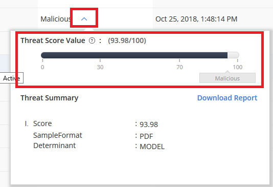 So you've found some malware in your environment, what now? After navigating to the malware page, select the drop-down arrow in the Scan Result column, and look at the threat score. Typically scores over 70 are considered very dangerous.