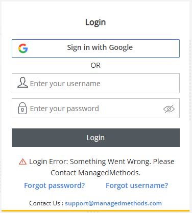 Contact ManagedMethods support for assistance on "Login Error" outcomes.